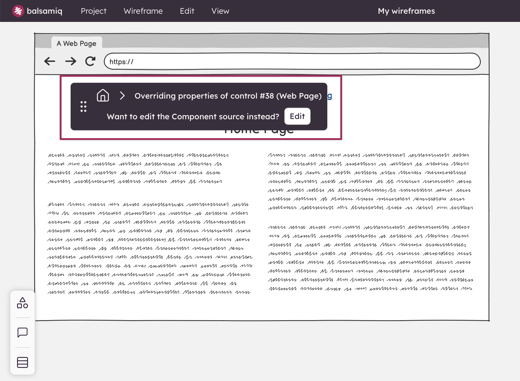 At this point, you can manipulate each UI element inside the Components at will, as if you were editing a group. Some operations are not permitted while overriding Component properties, such as adding, deleting or grouping UI elements. If, instead, you want to edit all instances of the Component, click the "Edit" button.