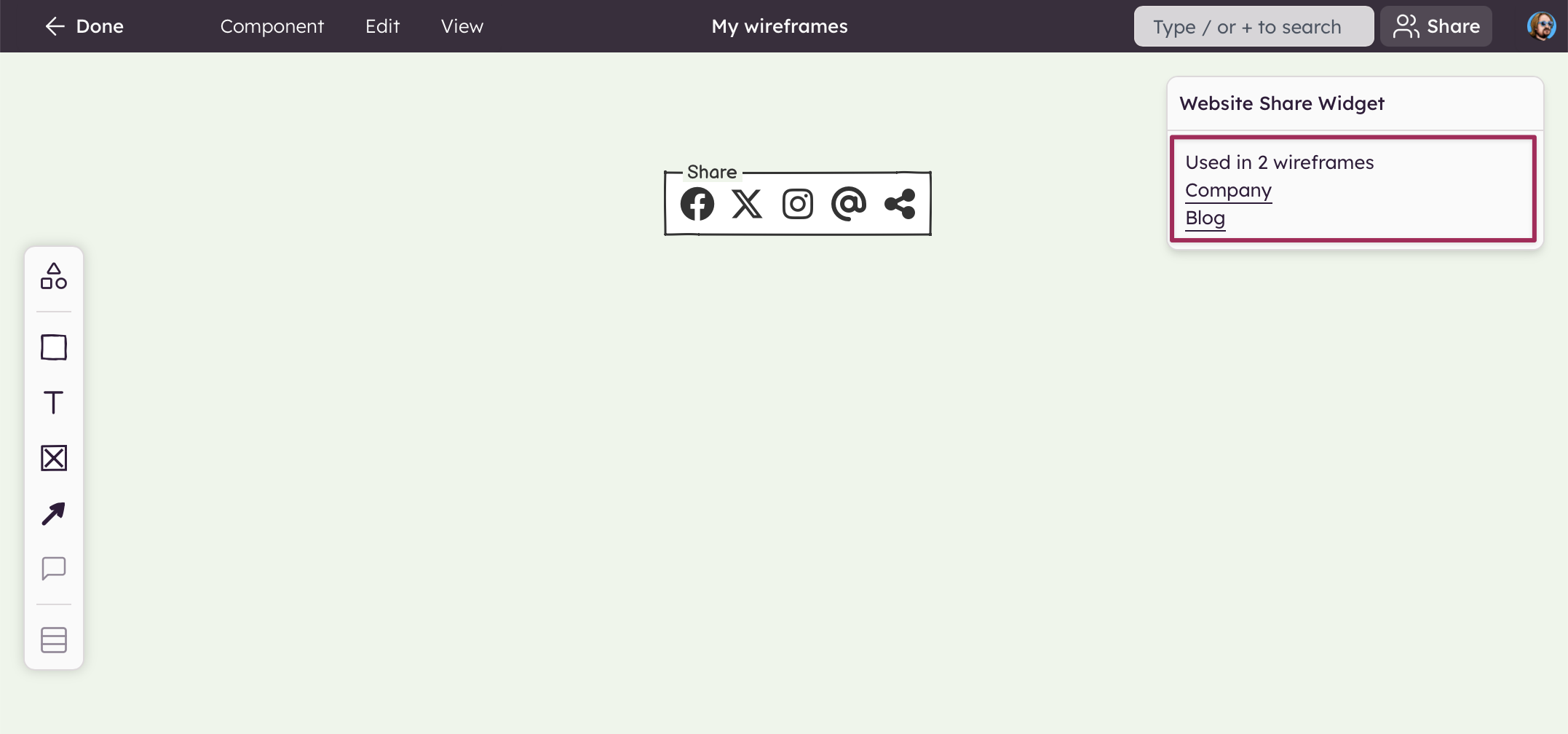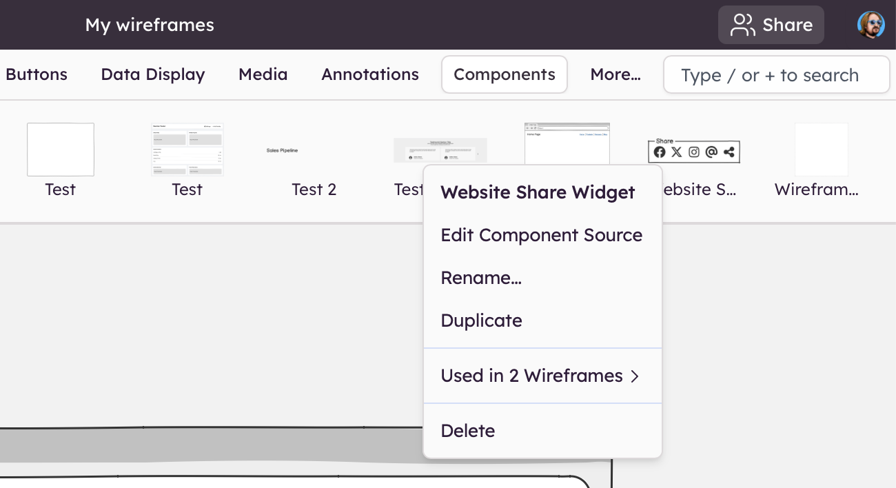 Note: Just like images, deleting a Component from a wireframe does not delete the Component, only that instance of the Component.