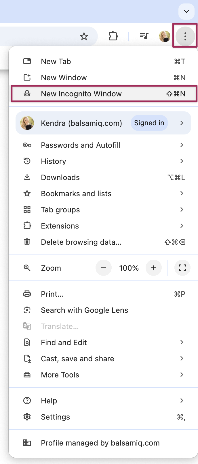 Note: macOS users can also create an Incognito Window in Chrome's File Menu, like Apple's Safari Browser